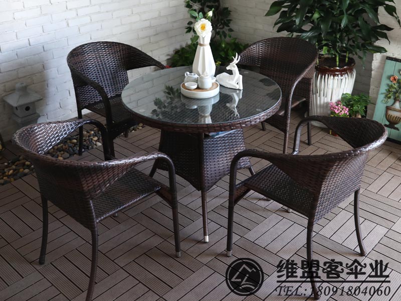 休闲用仿藤户外家具在大城市里是一块很大的市场,各种咖啡厅、酒吧、餐厅、休闲会所,宾馆,别墅,婚纱摄影等地方,都在使用各种样式的户外休闲家具来提升休闲情调。户外休闲家具 编藤桌椅厂家 维盟客伞业 13891905280 18091804060