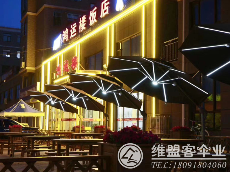 产品展示>>户外伞—罗马伞 >>酒店户外太阳能灯条伞 休闲伞