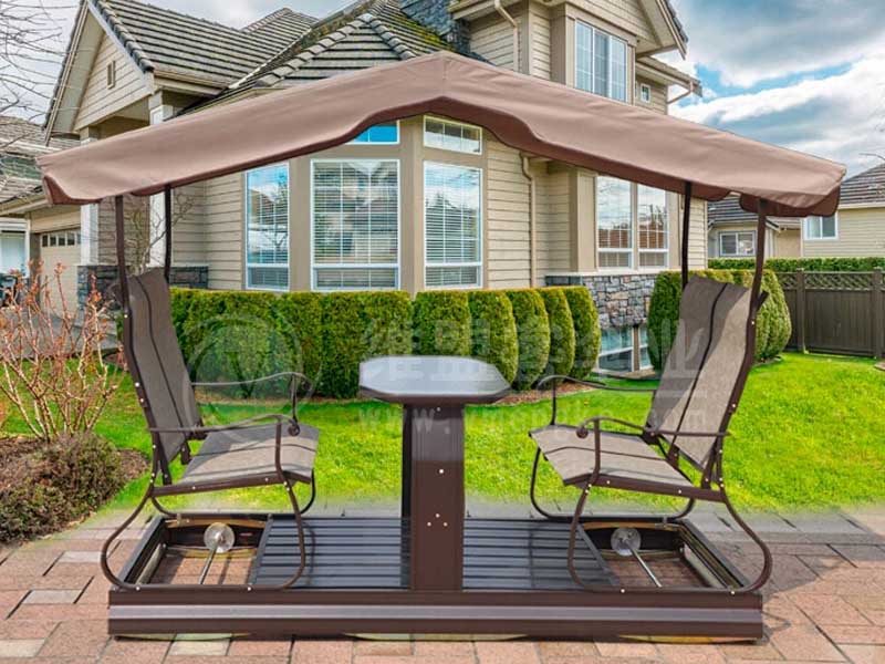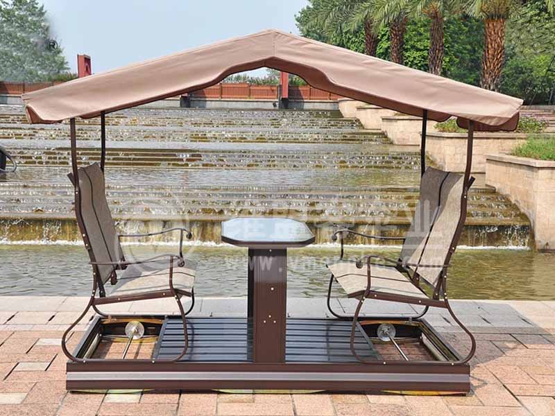 动摇椅有四人动摇椅和两人动摇椅,每种下面又分为带帘和不带帘两种。动摇椅是庭院休闲的新式招牌产品,极具动感,人坐上去后,脚在底座上稍稍使劲,动摇椅就随之运动起来。
